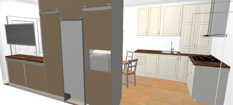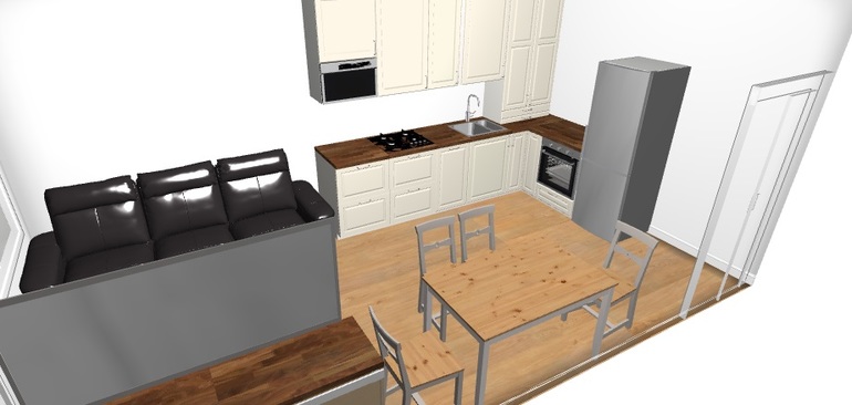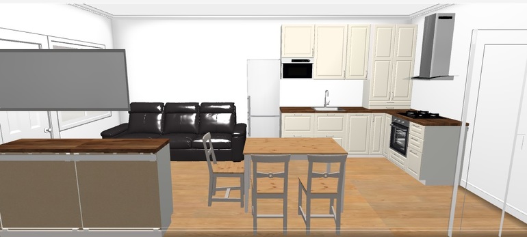 Хотелось бы сделать кухню гостиную, т.к. квартира 2-комнатная. Делается для пожилых родителей, если не передумают переезжать из частного дома)