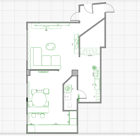 Имеется 3х комнатная квартира, на плане кухня-гостиная, 3 двери это санузел, спальня и детская, не стала их рисовать. Самое главное, как лучше спланировать кухню-гостиную. Это максимум, который мы придумали с мужем. Треугольная в коридоре это кладовка-гардеробная вход со стороны спальни (забыла нарисовать раздвижные двери). Хотим объединенную кухню и гостиную, покритикуйте, плиз) Жду ваших идей!