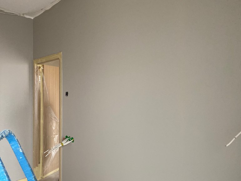 Спальню покрасили в серый, который мы с дизайнером выбирали почти Месяц! Сколько выкресту было сделано, сколько часов мы голову ломали... и вот он, идеальный серый!