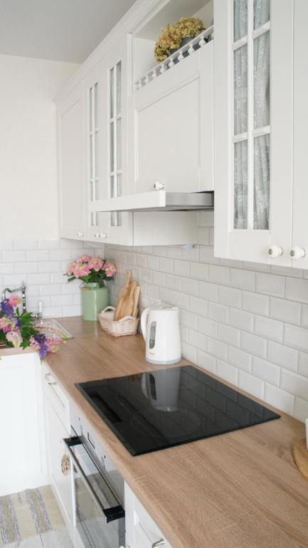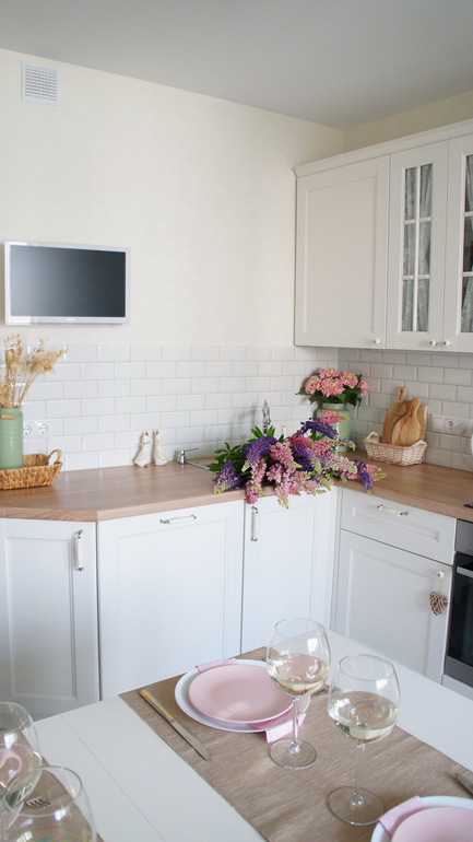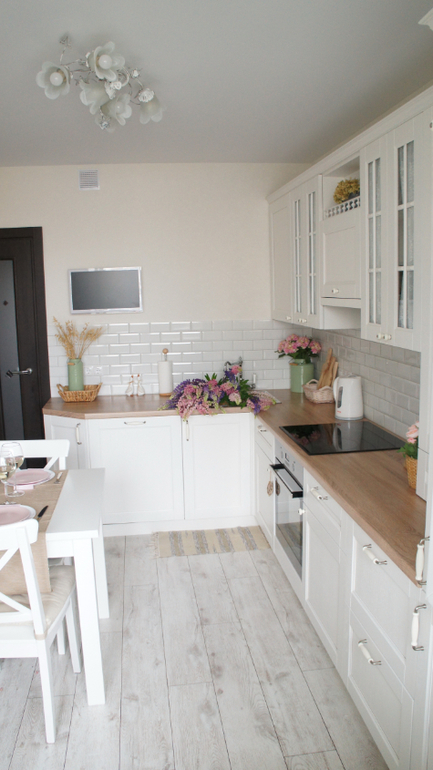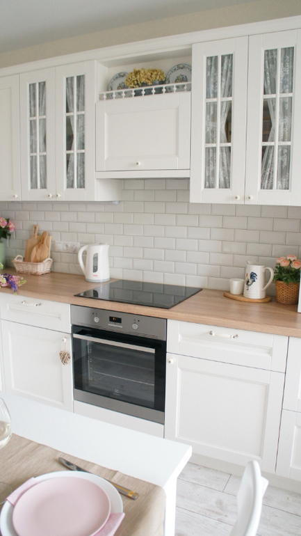 Потом месяц выбирала технику,читала отзывы,голова трещала) Потом ремонт,поиск мастеров и материалов.Сама продумывала электрику и освещение.Даже пришлось изучить строение естественной вытяжки ,т.к. предыдущие хозяева ее замуровали и я не знала,где ее искать.