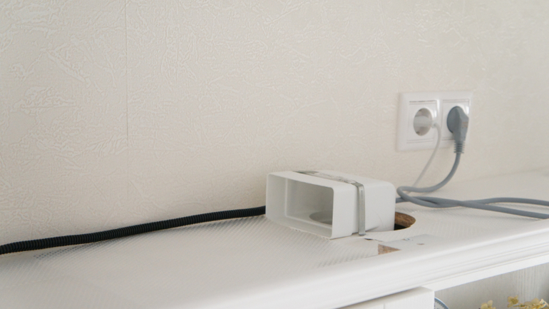 Вытяжка у нас вникуда через угольный фильтр,потому как естественная вытяжка оказалось такой сильной,что никаких запахов нет.Вот такое строение вытяжки и светильника,который включается выключателем.