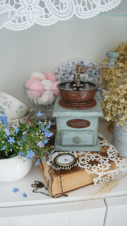 Кофемолку тоже полностью перекрасила и состарила до ржавчины.Иначе не вписывалась.