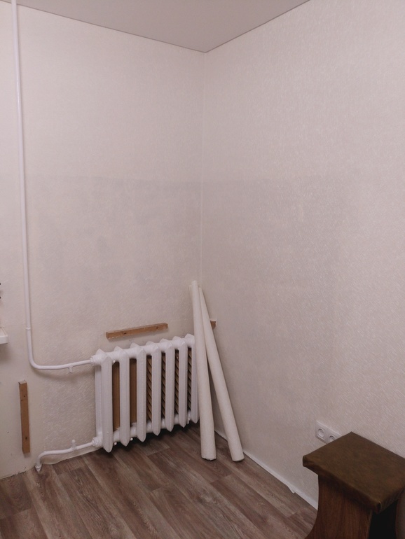 Вроде бы не тонкие брали обои. Через шпатлёвку не видно было краску, проявилась только после оклейки стен. На последней фотографии не оклеенная стена.