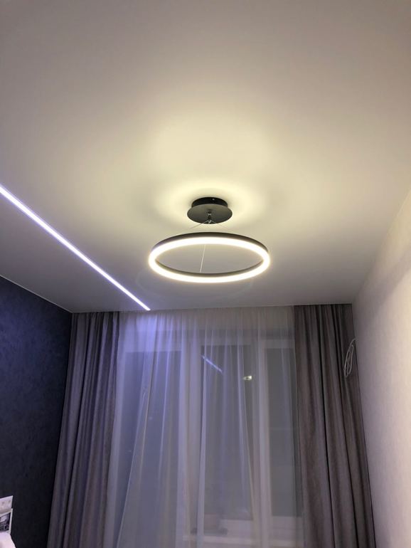 Световая линия на потолке очень нравится хозяину квартиры, любит с ней поиграться. Кстати, света от такой линии хватате. люстру включают редко.