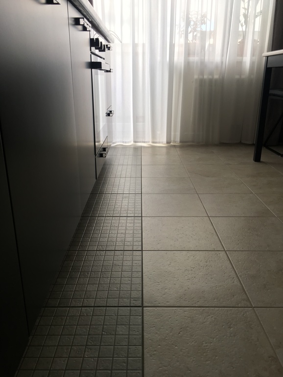 И обращу внимание на напольную плитку, которая переходит из коридора.