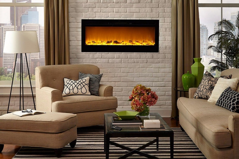 Электрический камин и около камина