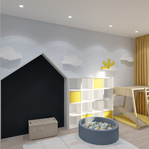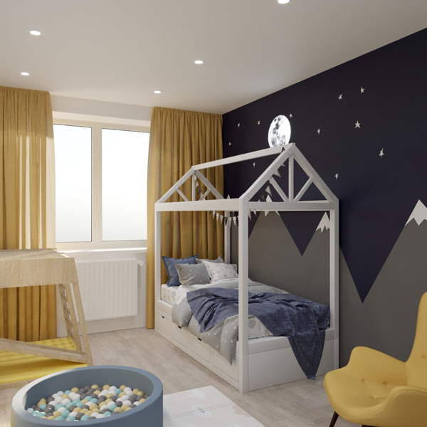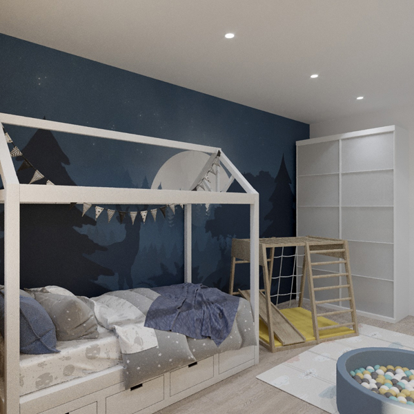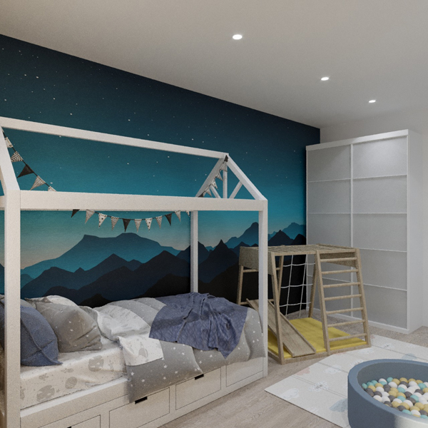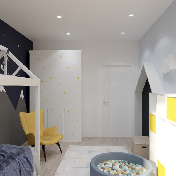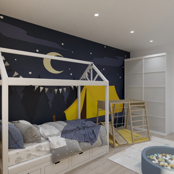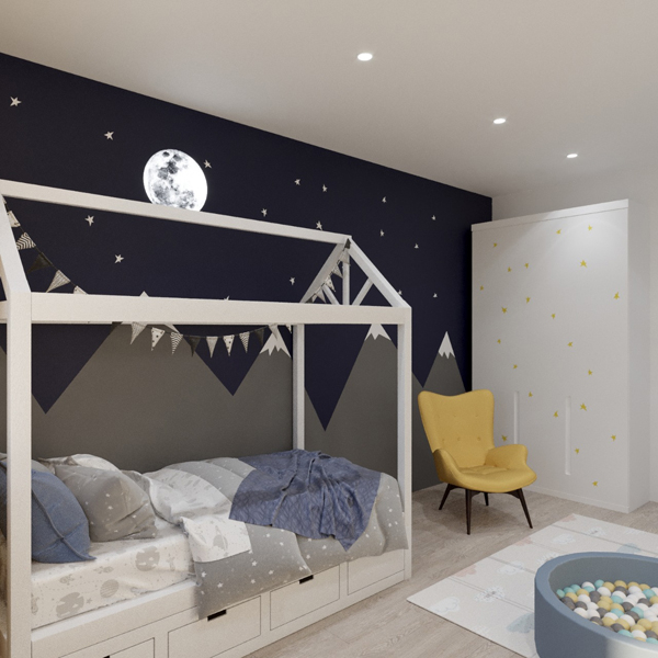 Сколько лет ребёнку? Если больше двух, то ему нужно место, где можно рисовать, складывать пазлы и т.п., но ничего похожего на стол со стульчиком на картинках нет при всей их красоте.