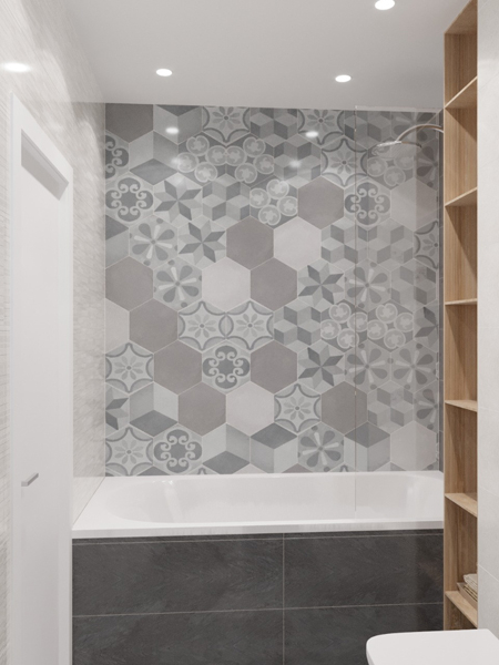 моя заказчица поехала в магазин и увидела эту плитку и мы ее использовали в ванной