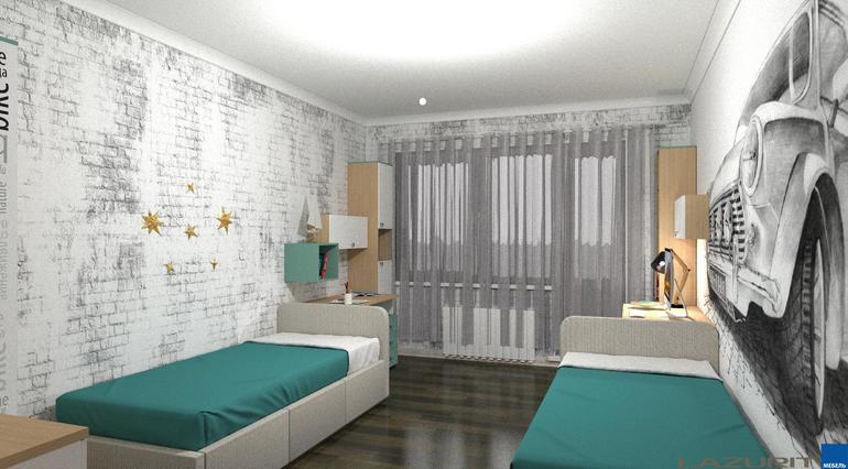 Незнаю как разместить места для книг/ игрушек/одежды/ спортивный уголок небольшой/ ТВ/ 2 раздельные кровати