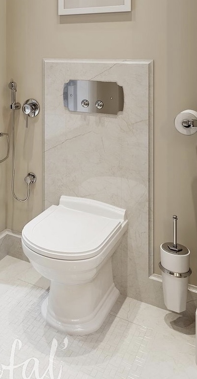 Обращайтесь к каменщикам, которые делают столешницу и фартуки на кухню. Сделают вам такой фартук и в туалете))