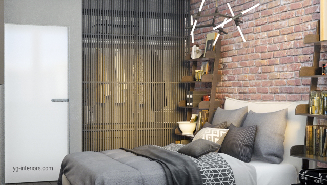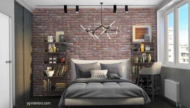 Кирпич в спальне.