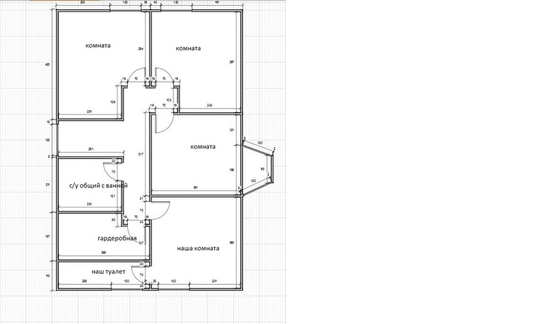 Не надо доробить пространство, будут давить стены. Коридор шириной хотя бы 120, метр очень мало. Детские комнаты отдельно от родительской спальни. Помещение 1 это гардероб, 2 туалет с душем.