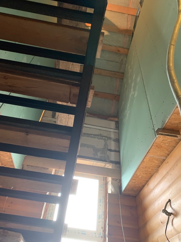 Вопросы по углу гле санузлы и гардеробная. Сейчас зашили стены и где лестница создается эффект шахты