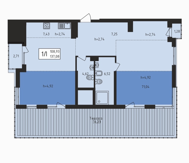 3. Низкие потолки 4.9 делим на 2, вычитаем перекрытия и пироги полов. Получается, что все помещения у вас будут 2.30 в лучшем случае. Для ванных и спален это допустимо, но для всех помещений это психологически не комфортно и будет низкоуровневым жильем.