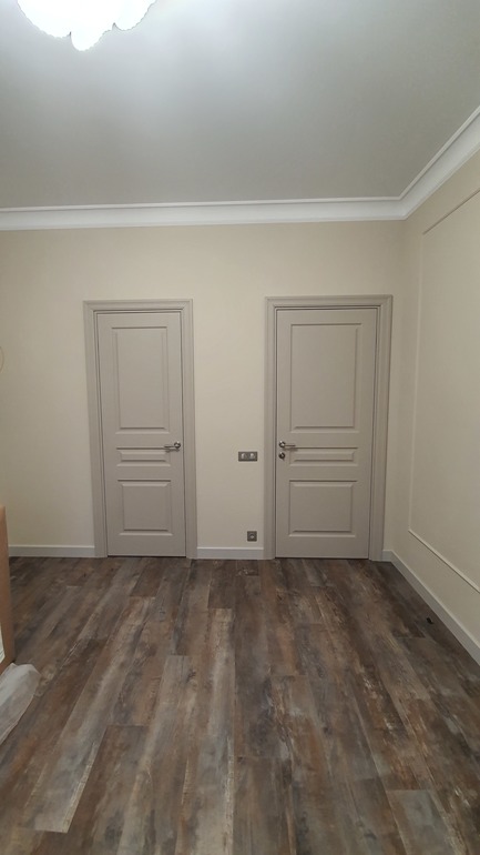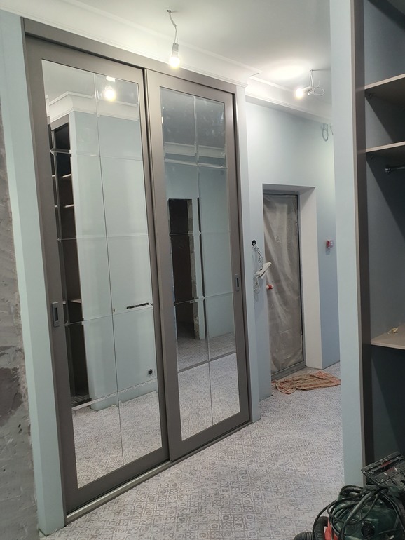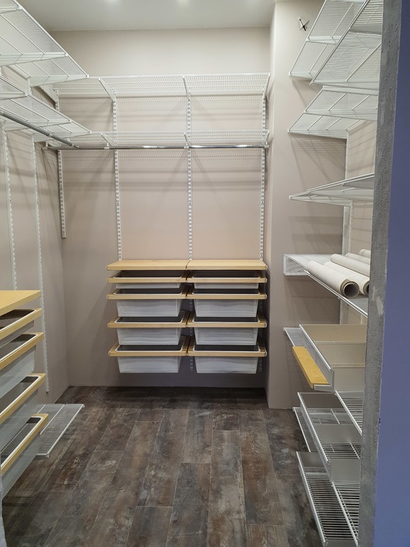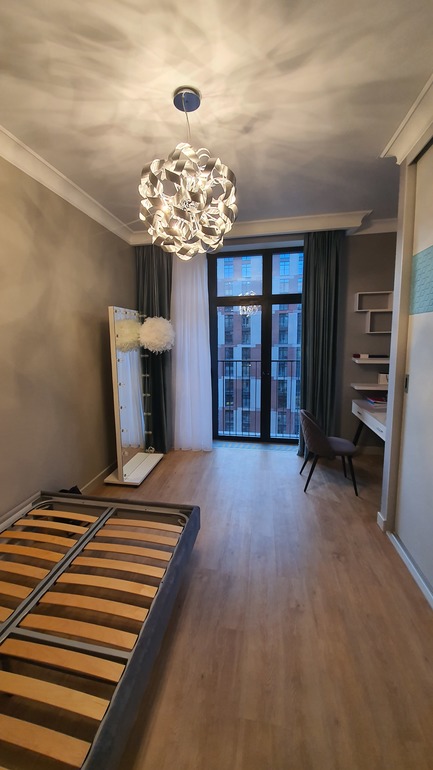 Хозяйская спальня и гардероб. К сожалению, кровать еще не собрана. Соберут и цветовая гамма сложится