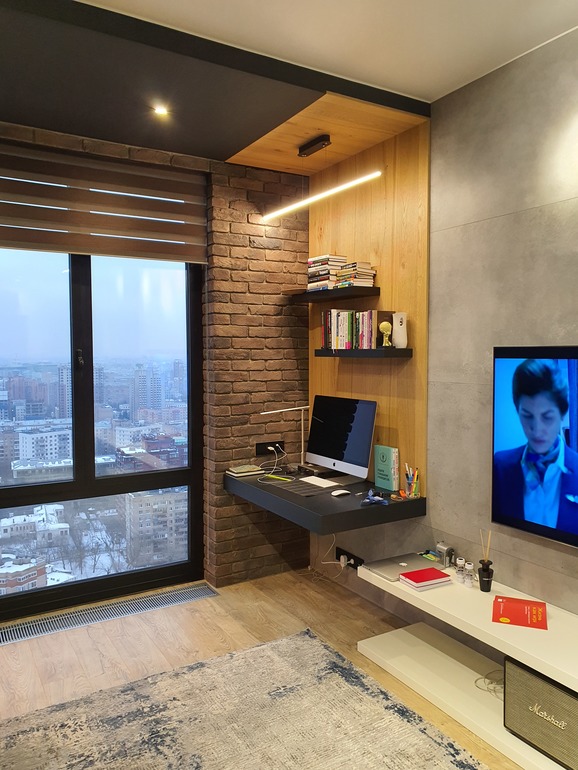 Круто! Мне понравился и столик и комната вся))) Единственное, на мой взгляд, я бы розетку сделала прям под столешницей ( не возле пола), чтоб меньше эти провода висели.