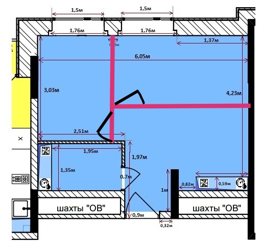 На фото квартира после 1 года нашего "сотрудничества". В студии возвели аж 2 стены (красные линии) и превратили в ночлежку.