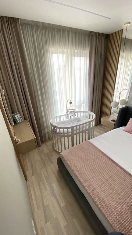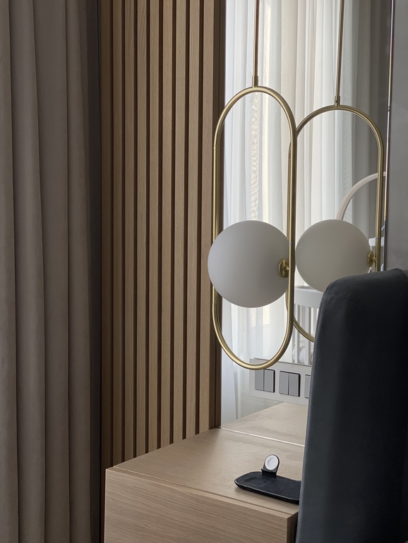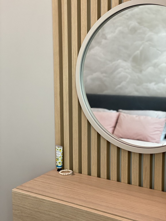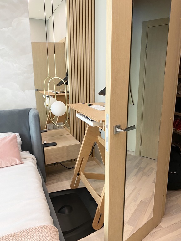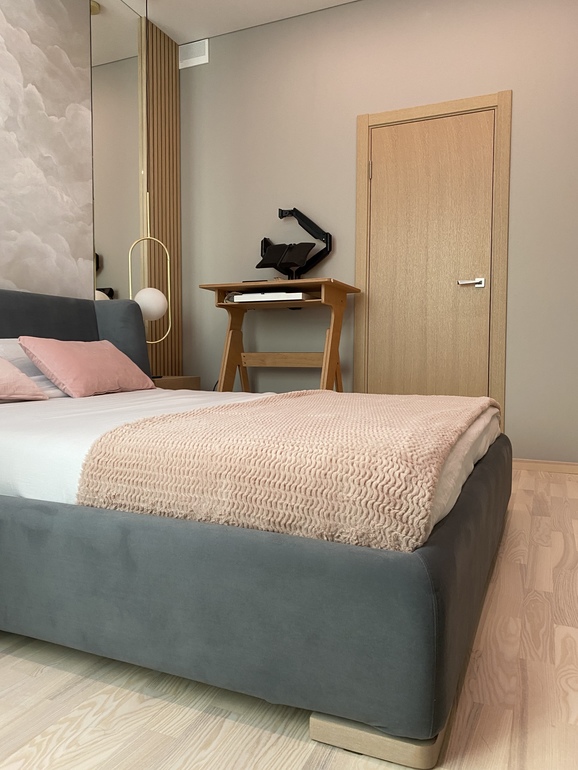 А реальность такова, что в спальне стоит ещё и рабочий стол мужа) к сожалению другого места для него нет. Хотя мы уже привыкли, что там стол) да и если бы не этот стол и работа, ничего этого и вовсе не было. В общем стол объект неприкосновенный вписывается он в интерьер или нет)