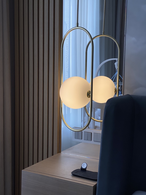 Любимые лампы (их все ещё не отрегулировали, должны висеть вровень с изголовьем).