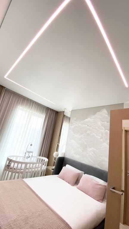 Вечером включаем подсветку, она придаёт спальне какое-то вот прям вечернее настроение... мне нравится)