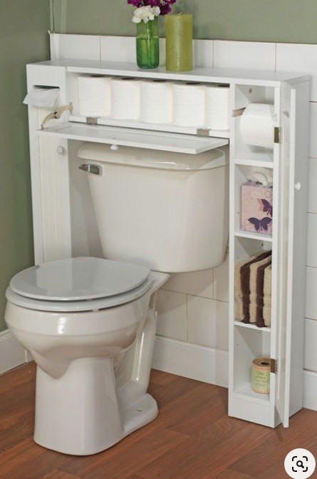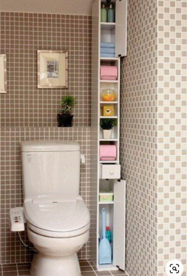у нас в туалете стояк с трубами закрывается жалюзийным роллетом. за ним трубы и полочки, там и храню бытовуху, туалетную бумагу, тряпки, губки и проч. сохнет там все мигом.
