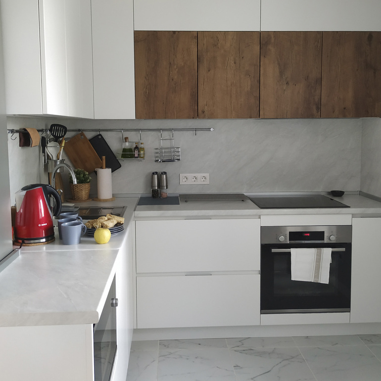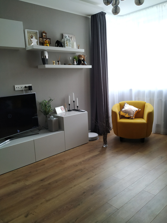 Прошло почти полгода с момента реализации проекта небольшой двушки на Разведчика Абеля. Площадь - 58м2 , бюжет на сегодняшний день составил 2,2 млн. на все про все .Ребята практически обжились, где-то еще остались какие-то коробки, дождаться шкафа в прихожую и докупить по мелочи: ковер, журнальный столик, текстиль на кухню и повесить телевизоры на свои места. Где-то Заказчики проявили собственую инициативу, и пускай я с чем-то не особо согласна, вцелом получилось узнаваемо и не сильно отступили от идеи.