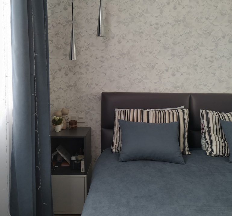 Обои темно серые не по проекту- клиенты самостоятельно их заменили на другие по каким то причинам.. и в спальне за кроватью тоже заменили на цветочки (у меня там был орнамент). Все обои должны были быть из одной коллекции - бельгийская фирма BN . Сейчас скину ссылку
