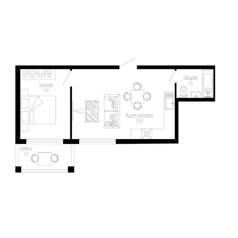 Можно было бы ,возможно так? кто-то на диване, кто-то на стульях. Да в проходе, когда едят. Но если едят все вместе, то никто и не ходит в этот момент, а потом просто задвигаются. А в санузле было бы здорово сделать раздвижную перегородку, чтоб пока моются, можно в туалет. У нас вечная проблема ожидания, когда домик снимаем, с пляжа помыться надо, а кому-то в туалет. Тут конечно, обратная проблема, кто-то помылся и выйти хочет, а тут туалет занят. Но если все свои можно и крикнуть, что занято и подождать выходить.