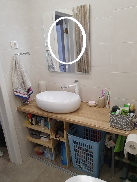 А еще очень просится зеркало в ширину всей столешки) но это мой бзик, люблю когда в ванной зеркала широкие) ванная комната замечательная вышла!)