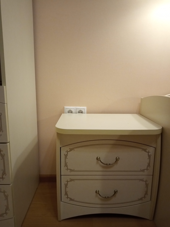 Показала мужу. Он посоветовал сделать накладную розетку. Старую снять, вывести провод и над тумбочкой накладную розетку. Типа такой.