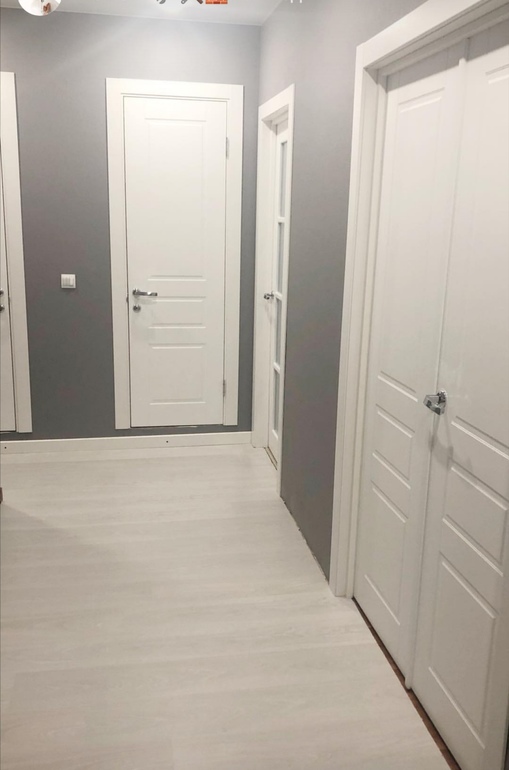 У меня пока ничего, это у моей сестры. Это обои с эффектом окрашенных стен, но я их найти не могу, такой приятный серый😍