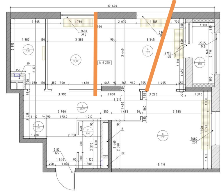 А где какие помещения? 4 - это какое вообще помещение? С/у? №8 - это кухня или кухня-гостиная?