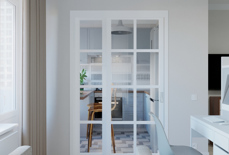 Ирина,в посте написано,что перепланировка в квартире была уже сделана. Открытый проем из кухни я закрыла раздвижной дверью.