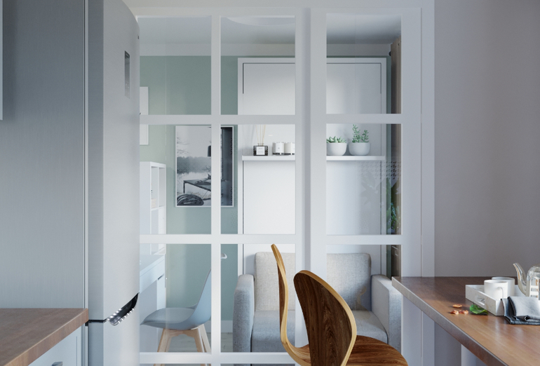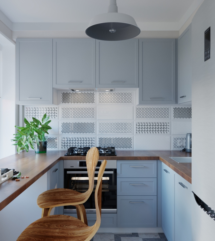 Сегодня покажу вам часть проекта однокомнатной квартиры. Это визуализация небольшой кухни.
