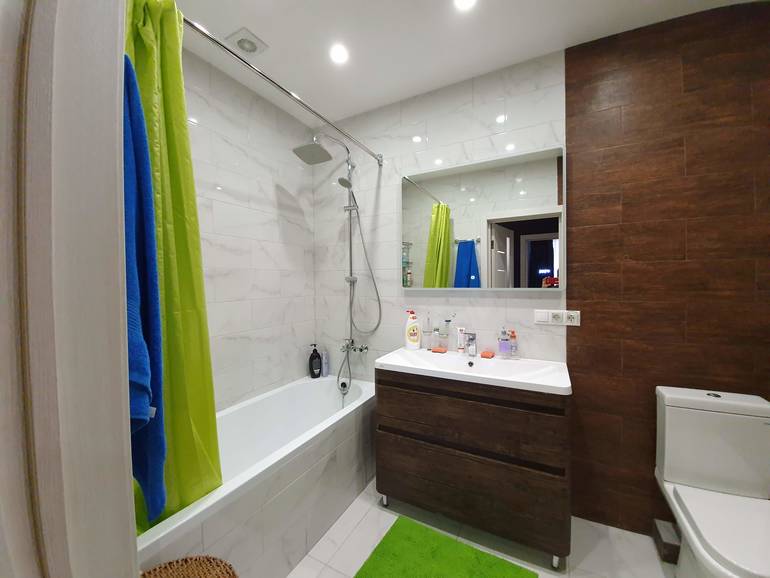 Вот и я теперь сомневаюсь. Но у меня полностью стена над и под ванну будет светлая, а остальное серым. Получается шов из угла будет расходится, причем над ванной в разбежку, вот думаю не так в глаза будет бросаться?