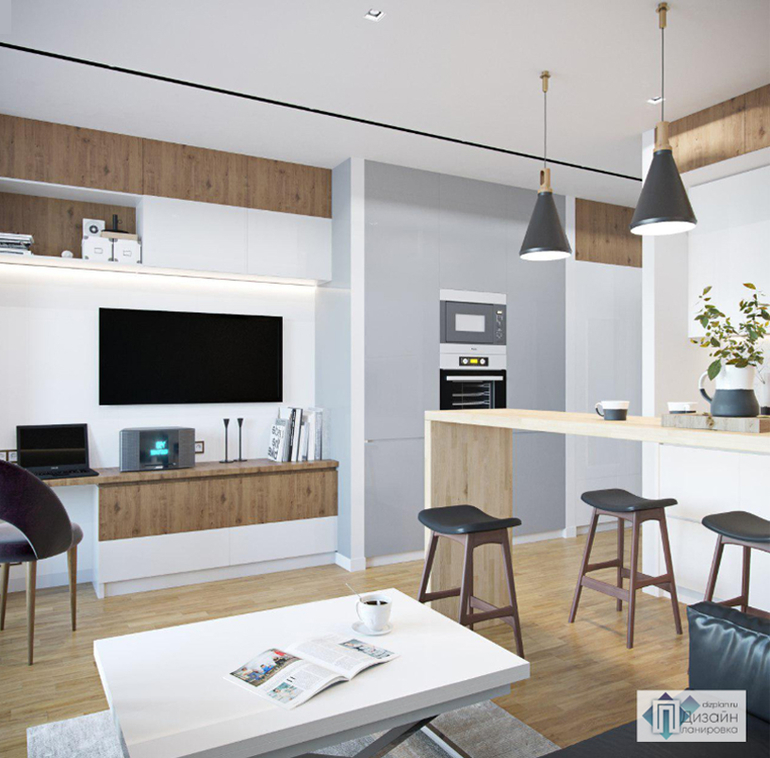 Журнальный столик можно трансформировать в обеденный стол, а диван разложить