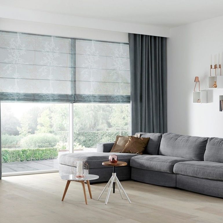 Декор окон. Текстиль. Жалюзи.Добрый день. Подскажите какие шторы можно повесить в гостиную. Хотелось бы окно не загружать и от света защититься. Имеем окно во всю стену г-образной формы.