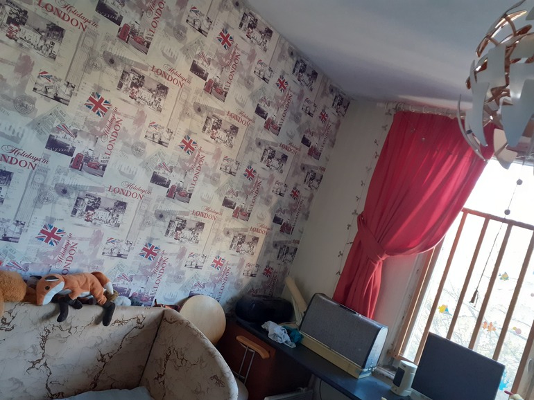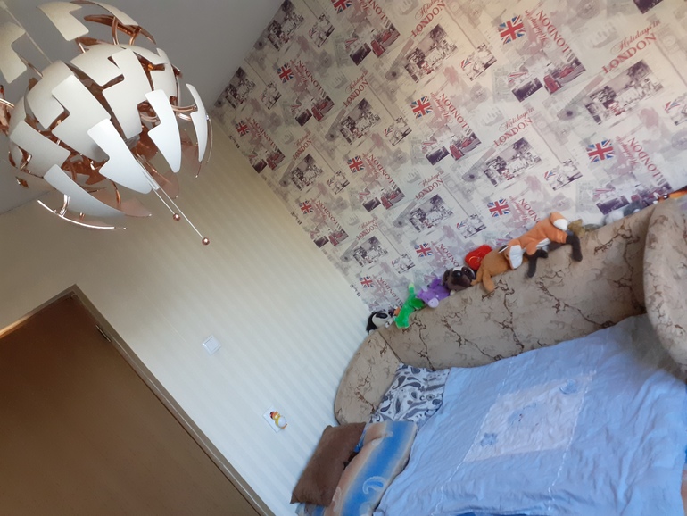 Причем, в гостиной обои по 2000 за рулон, а в спальнях по 250 р бумажные.