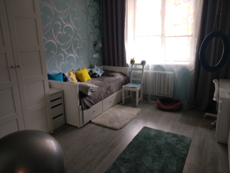 Спасибо. У нас, получается, ещё за кушеткой стена свободная будет... А за шкафом не бюджетно пускать выйдет... Теперь думаю, может, эту стену однотоном оставить и заакцентить напротив, где будет потом консоль, телек и тп...