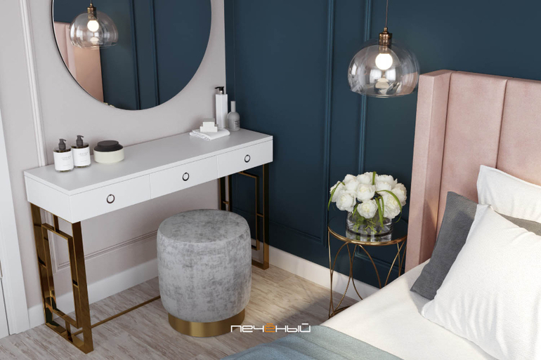 Самое сложное было на этапе подбора материалов и мебели: меняли что-то одно, второе, третье - и так по многу раз. Потому что нужно было сохранить визуальную составляющую, которая понравилась заказчикам, но уложиться в заданные финансовые рамки. А местами это бывает очень тяжело. Особенно, если хочется диван или шкаф определенного типа, которого попросту не бывает в бюджетном ценовом сегменте.