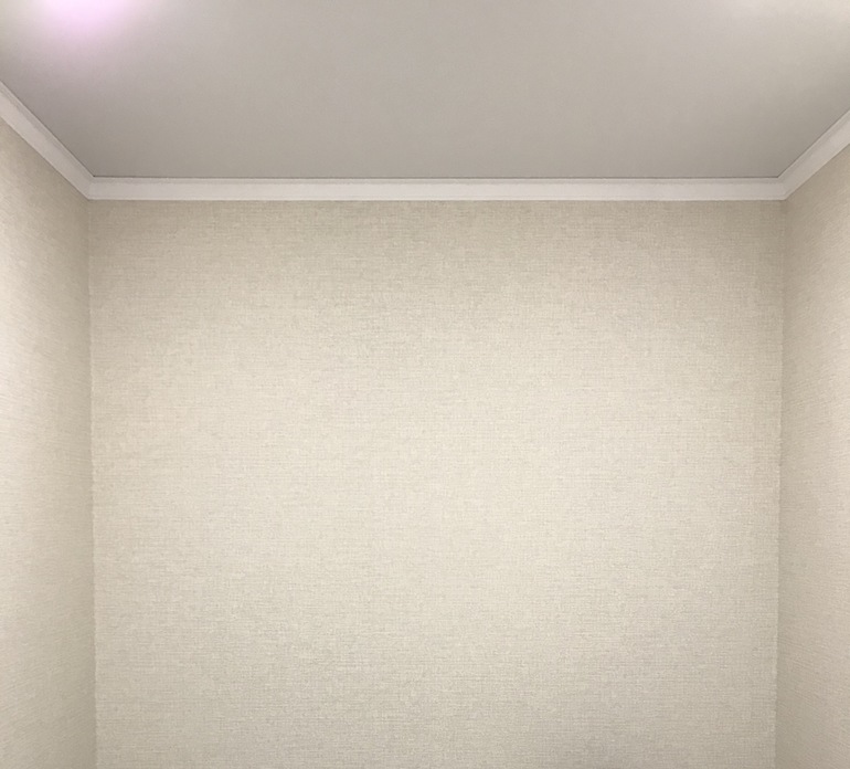 Вот тут правильно сделан плинтус и натяжной потолок. Щели нет, потому что плинтус крепится не к потолку, а гипсокартонному коробку, который был построен специально для этих целей