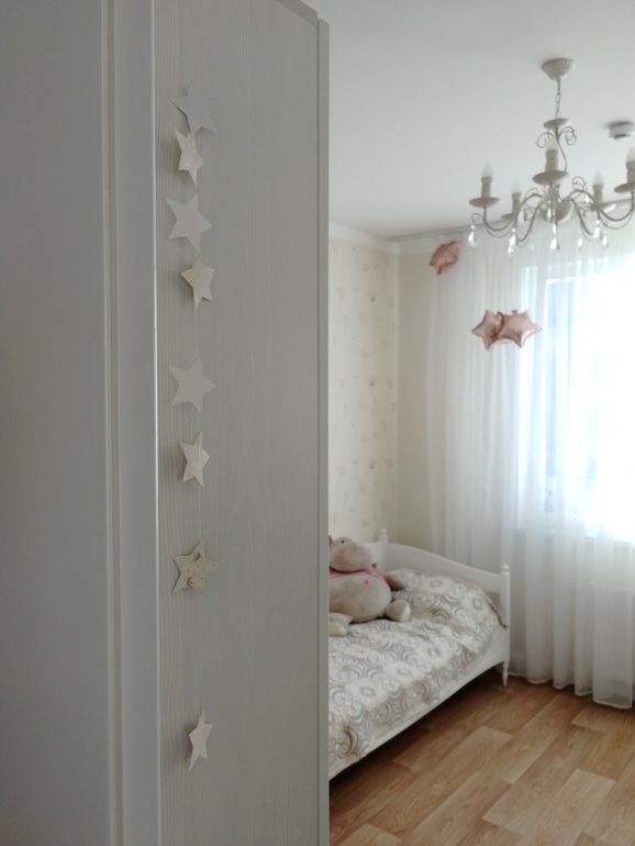 Интерьерное решение детской комнатыРемонт у нас от застройщика, мы меняли только плинтус. Комната ещё не готова полностью, поэтому показываю только кусочки)