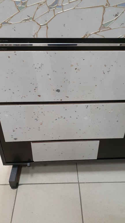 Вот этот вариант в реальности эти пятнышки просто нарисованы на поверхности плитки, выглядит не так как хотелось бы, очень дешево, как будто краской пол испачкать. ИМХО