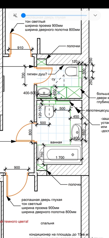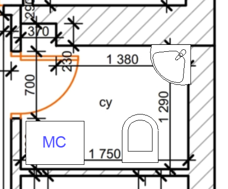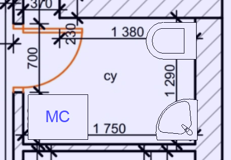 Суть такая. Есть 2 санузла, один 4,5 кв.м другой 2,5. В маленький хотим поставить стиралку, унитаз подвесной 54 см с инсталляцией итоговой на 18 см и раковину на 30-40 см. Размеры санузла 1290×1750. Дизайнер нам нарисовала конечно и нам понравилось, но нарисовав все это на объекте получилось что не влазит. Машинка открываться будет не полностью. Может подскажите как можно по-другому обыграть пространство? Вариант дизайнера прилагаю