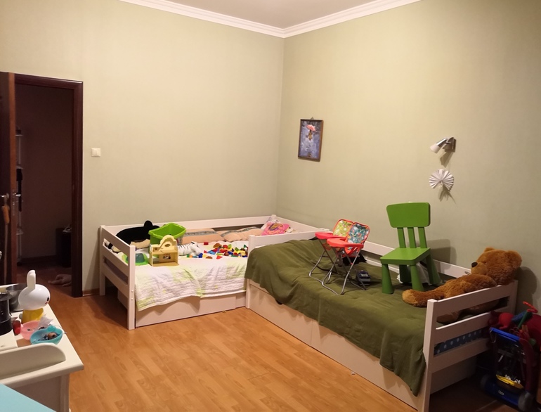 Интерьерное решение детской комнатыВот такая комната. Мебель уже куплена (как на последнем фото), лежит ждёт три месяца, когда соберут ((. Мебель будет идти вдоль стены, где комод и домик. Где коричневый шкаф будет стол. Все в бежевом цвете. Шторы пока такие икеевские. Чем разбавить тона? Какие покрывала - коврик купить? Пастельные или яркие, однотонные или нет? Посоветуйте,пожалуйста 🌹