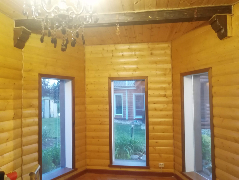 А хорошо ли "классика с ламбрекеном" будет сочетаться с деревянным потолком и стенами?
