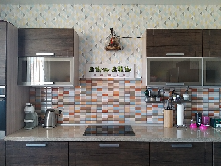 Скинали у вас красивое, можете подсказать где заказывали? В уборке удобно? У вас стена покрашена?