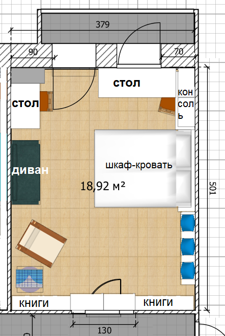 Думаю над планировкой комнаты "спальня-гостиная-кабинет"