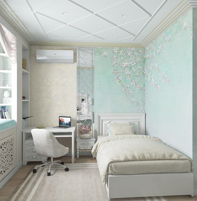 🔸В спальню дочери дверь не ставили, поскольку комната небольшая.