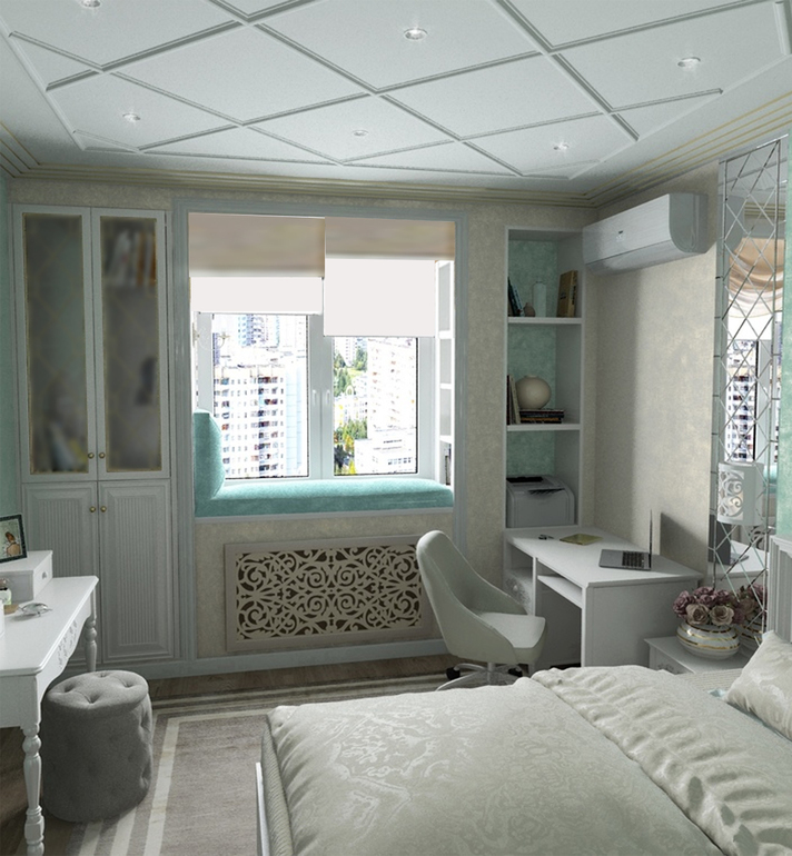 🔸Спальню объединили с балконом, между ними поставили французские двери.